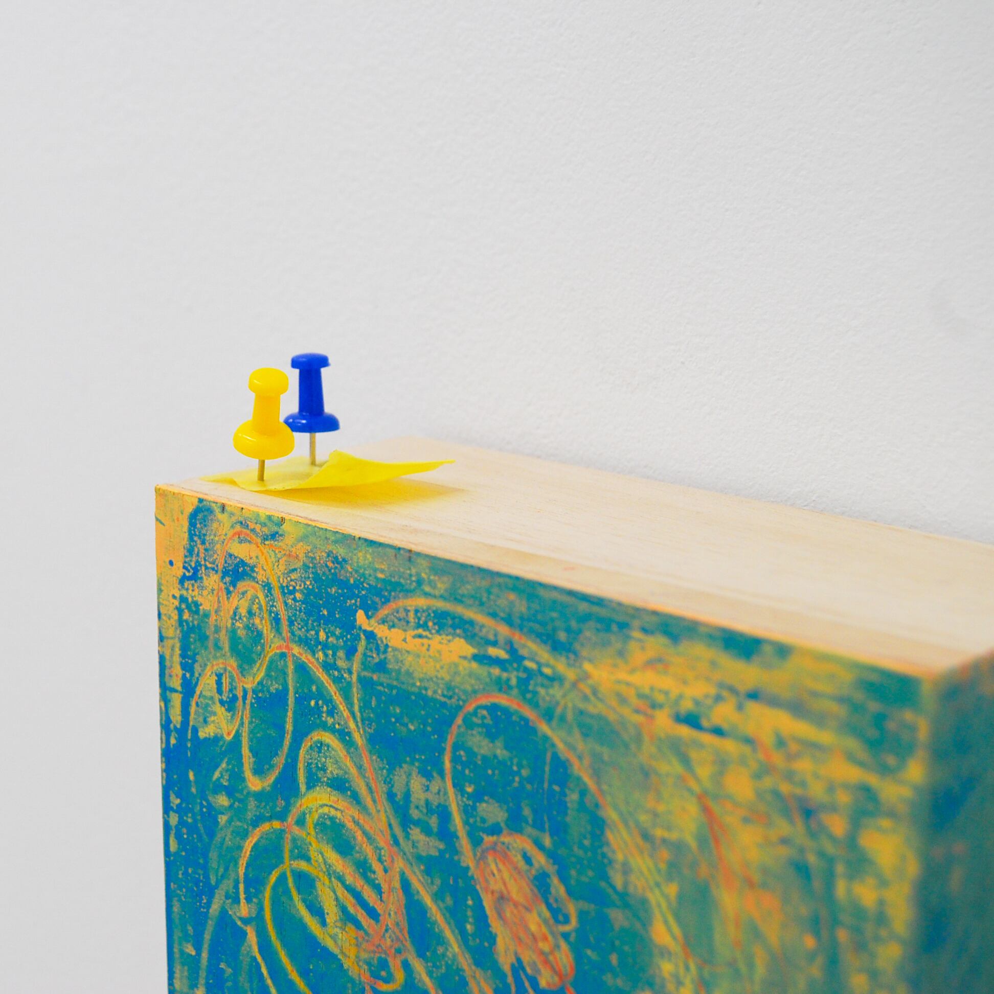 素材 / Material:木、紙にシルクスクリーン、プッシュピン、テープ