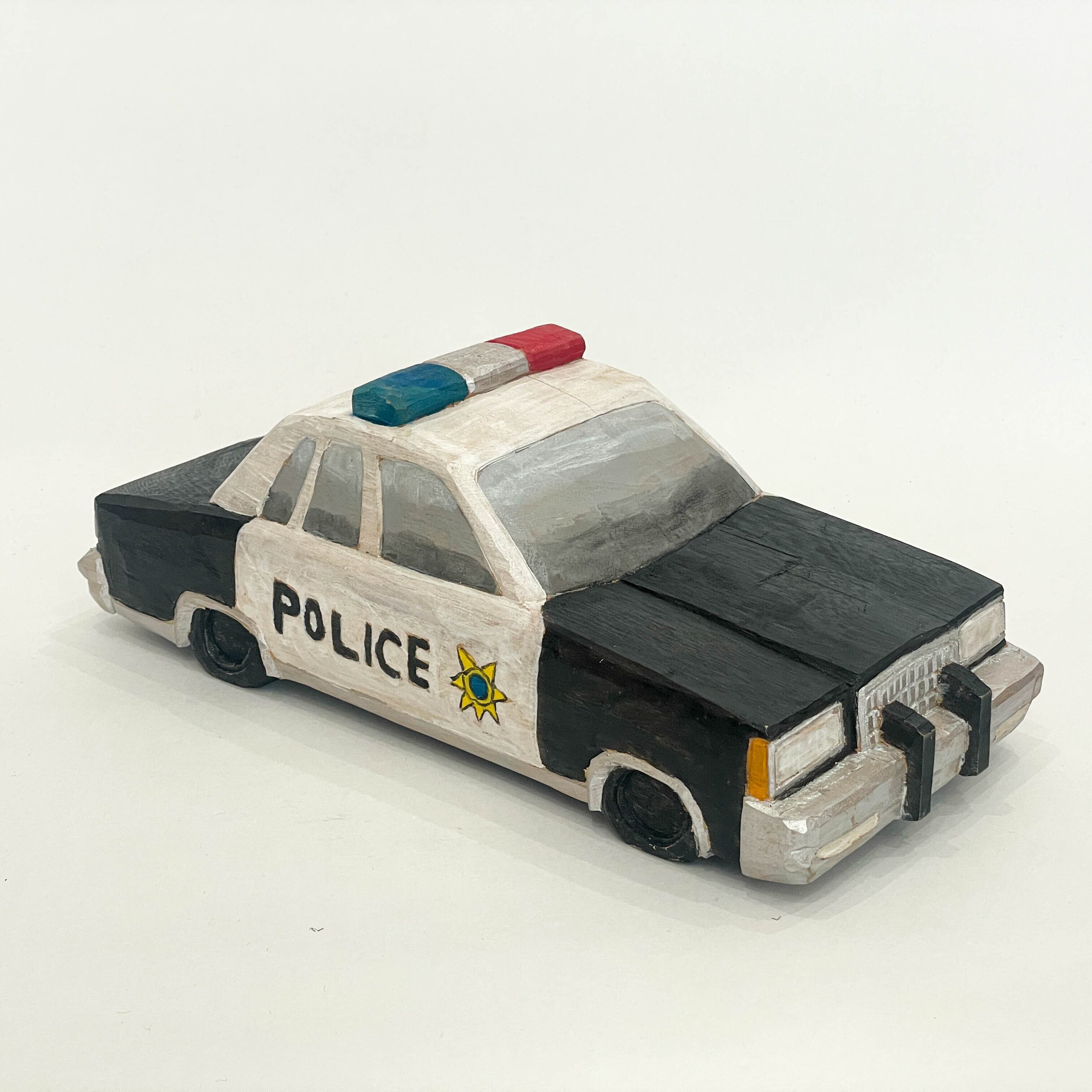 自身の愛車を彫ったことを発端に、映画やアニメに登場するスーパーカーや実在の旧車などをモデルとし、写真をもとに想像を織り交ぜながら制作された多種多様な車たちは、フィギュアのような緻密さはなくとも、それぞれの車が持つ特徴が的確に捉えられ、木独特の温かみを感じさせてます。
