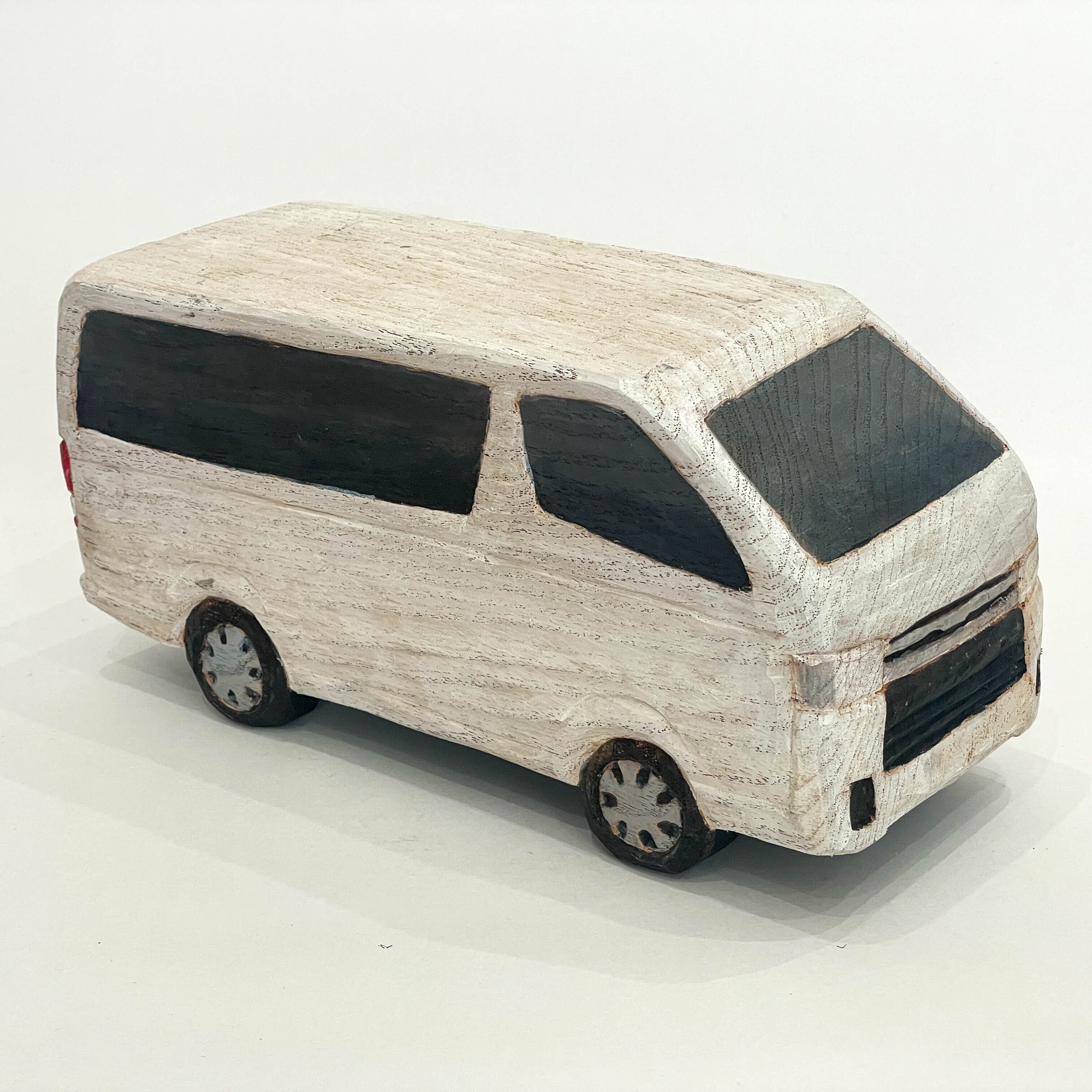 Inspired initially by carving his own car, Yamasaki then turned to model vehicles from films, anime, and classic real-life cars. Crafted from photos with a blend of imagination, each piece captures the distinct features of its subject, bringing out the warmth of wood. Although not as detailed as figurines, these sculptures evoke the essence of each vehicle with a unique charm.