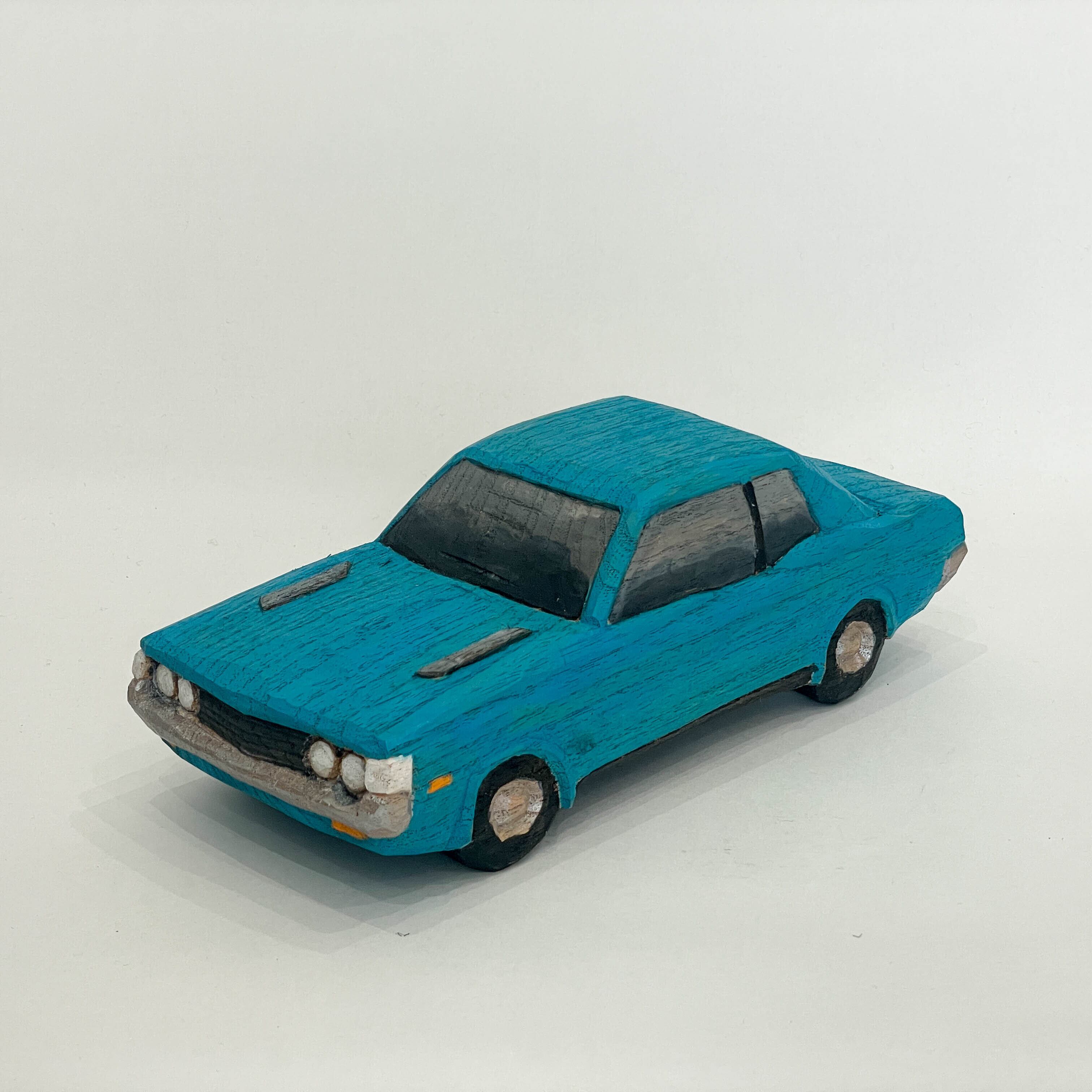 自身の愛車を彫ったことを発端に、映画やアニメに登場するスーパーカーや実在の旧車などをモデルとし、写真をもとに想像を織り交ぜながら制作された多種多様な車たちは、フィギュアのような緻密さはなくとも、それぞれの車が持つ特徴が的確に捉えられ、木独特の温かみを感じさせてます。