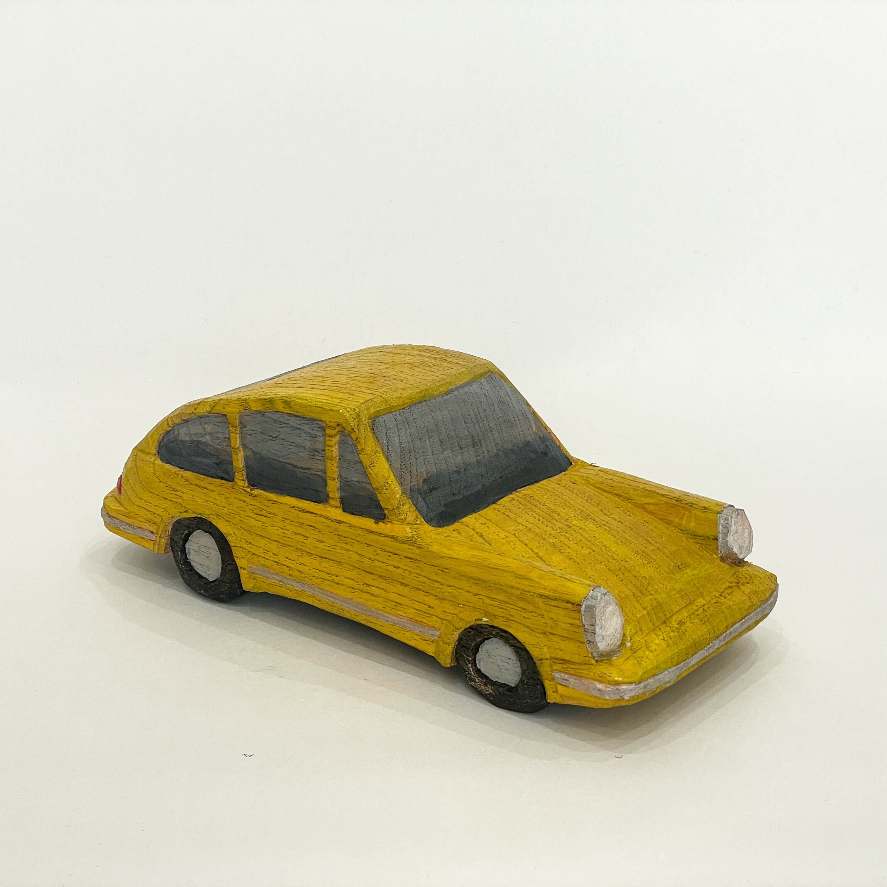 自身の愛車を彫ったことを発端に、映画やアニメに登場するスーパーカーや実在の旧車などをモデルとし、写真をもとに想像を織り交ぜながら制作された多種多様な車たちは、フィギュアのような緻密さはなくとも、それぞれの車が持つ特徴が的確に捉えられ、木独特の温かみを感じさせてます。